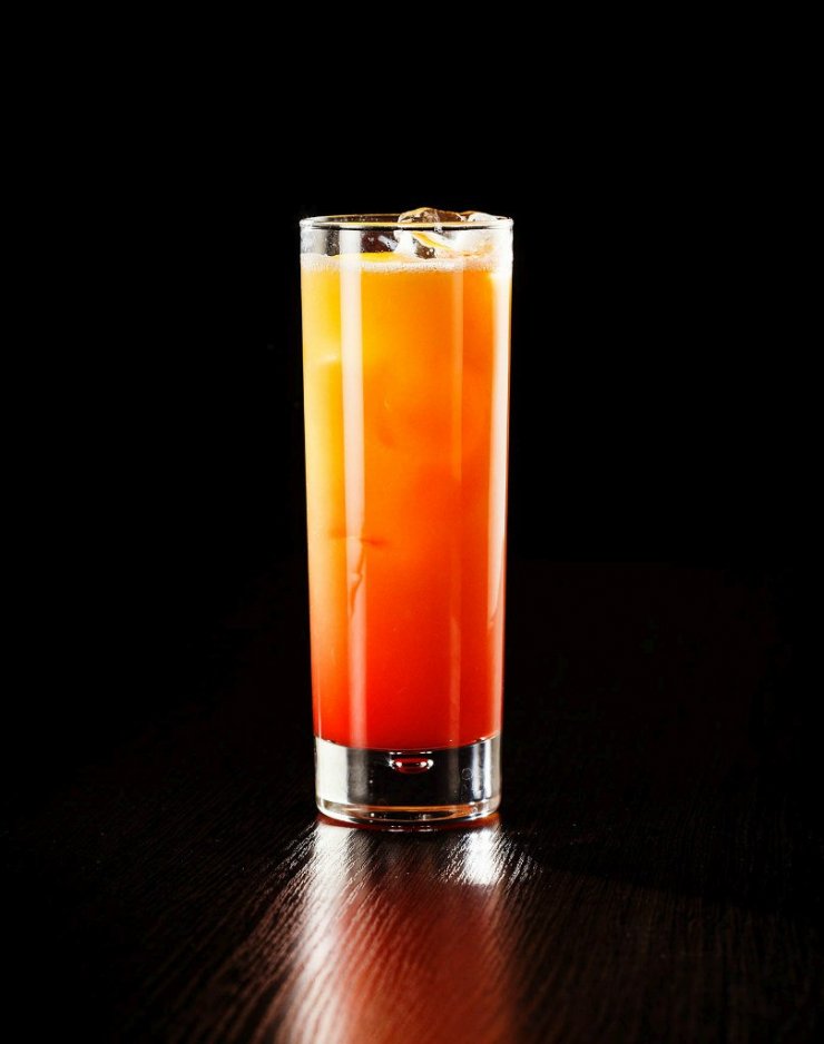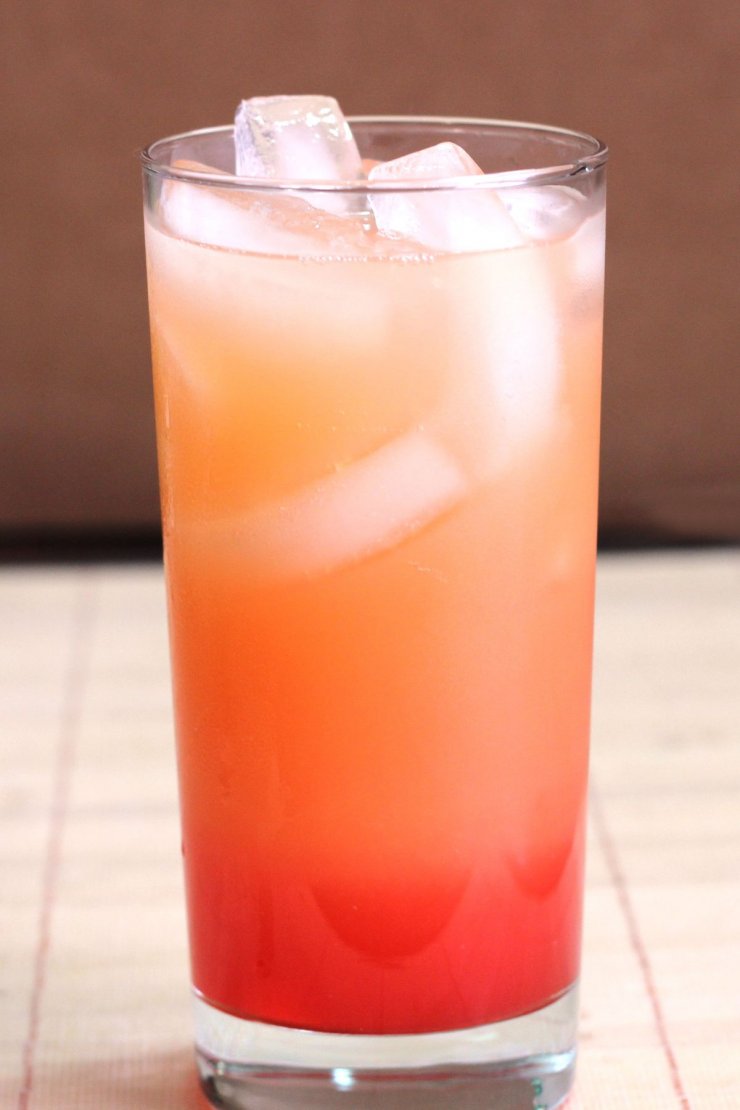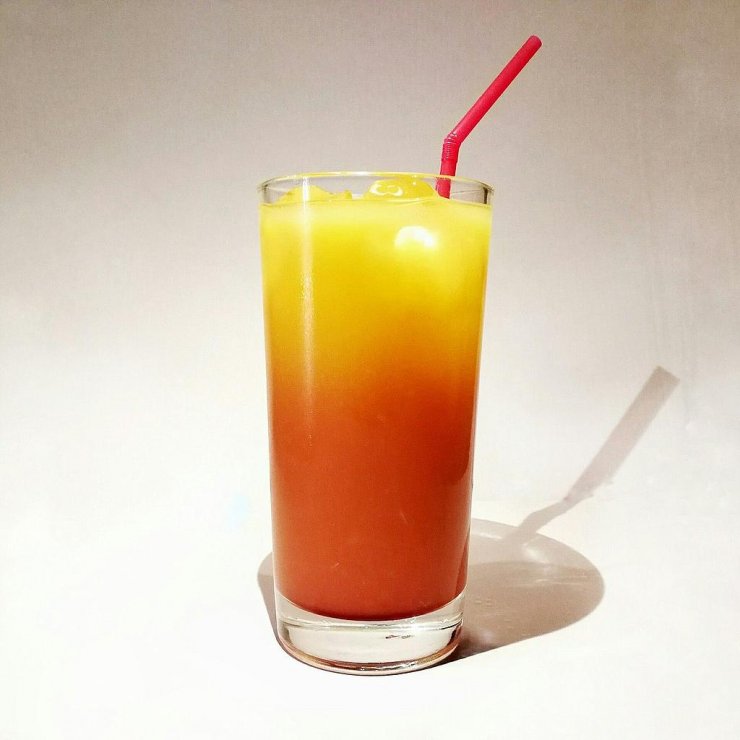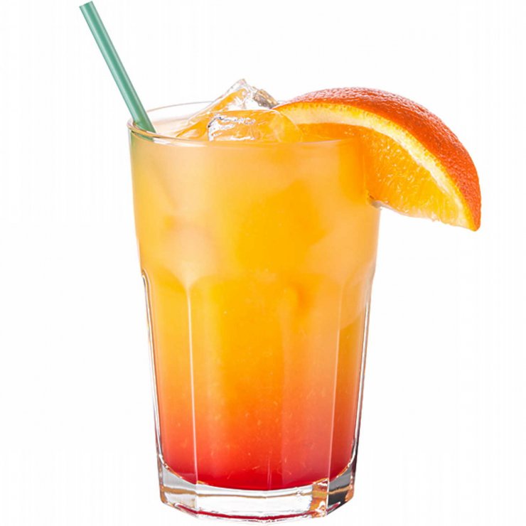Берем шейкер и заливаем 150 миллилитров сока апельсина, к нему добавим 50 миллилитров текилы. Все это хорошенько перемешивается и выливается в бокал. Подойдет хайбол или рокс.