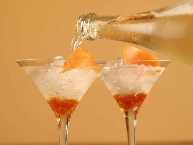Еще один оригинальный рецепт будет состоять из сока апельсина и мандарина в равных пропорциях. Также потребуется то же количество сливок, яичный белок и немного сиропа.