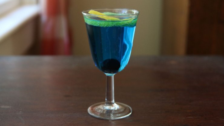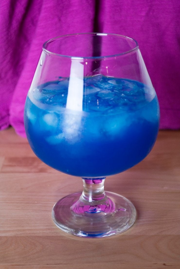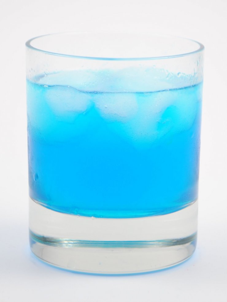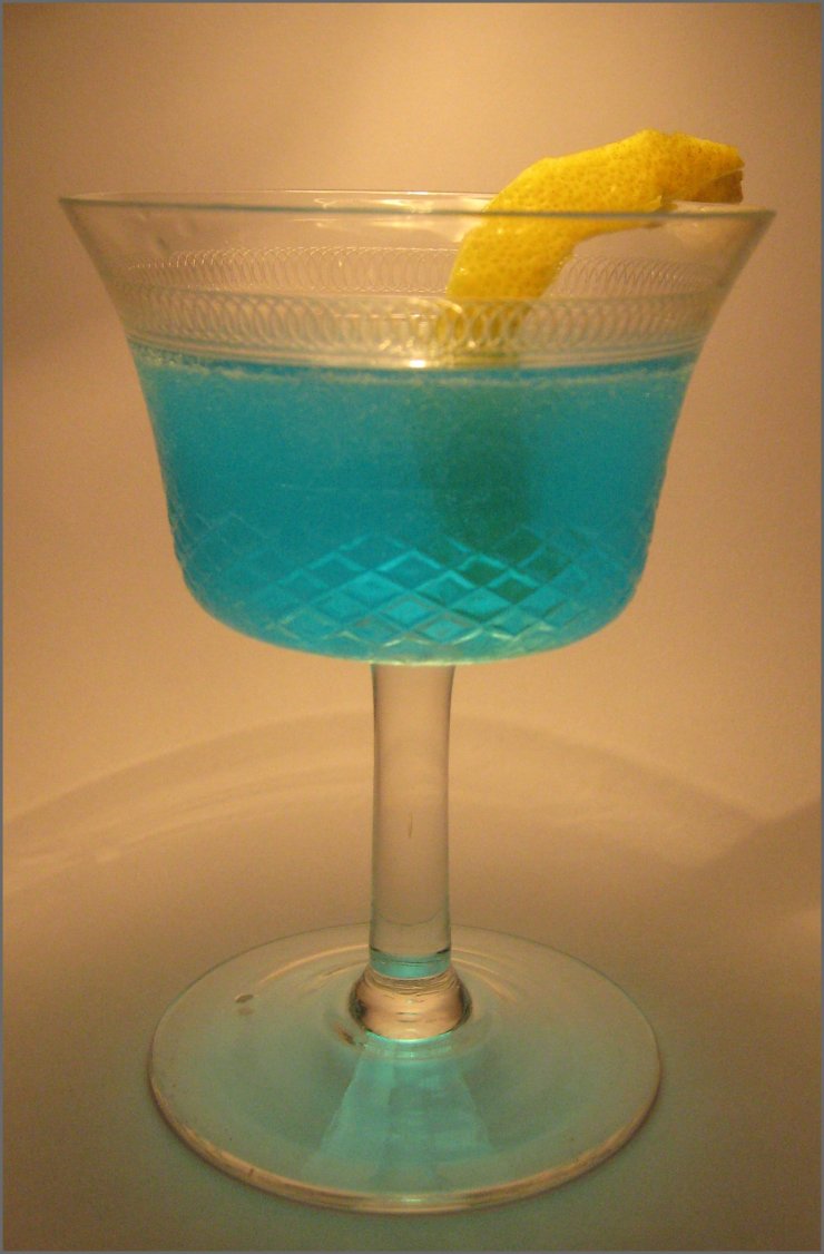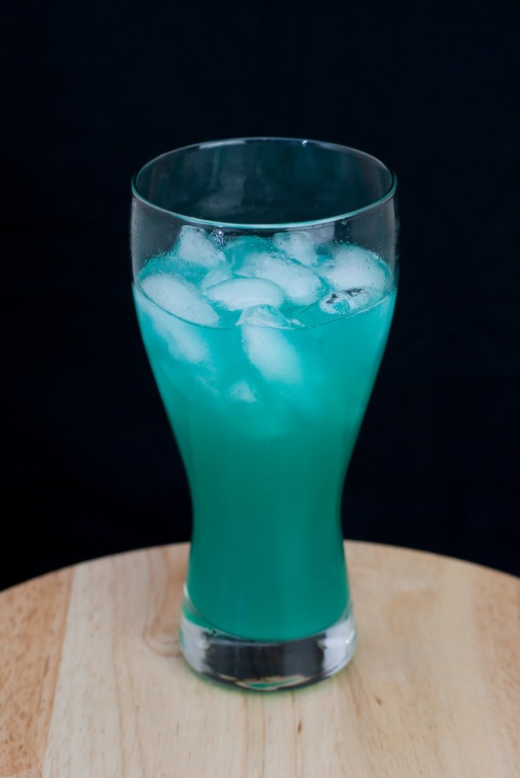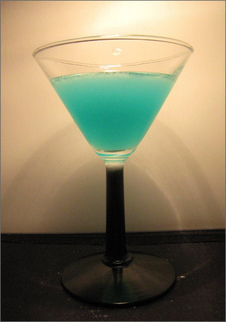 - В шейкер вливается 50 мл водки и 20 мл Blue Кюрасао, перемешивается и выливается в бокал;