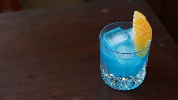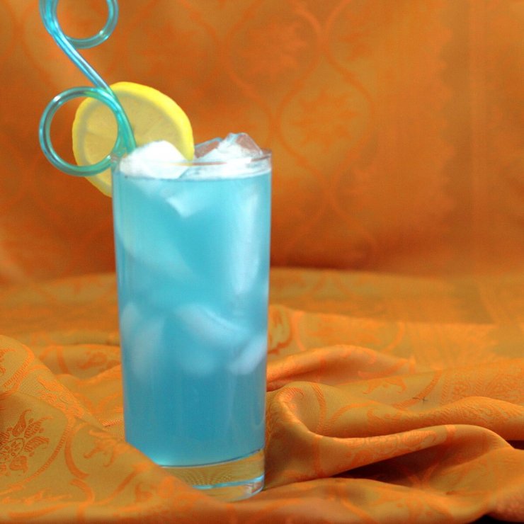 Этот коктейль с ликером Blue Кюрасао выглядит немного вызывающе и женственно, а его вкус легко регулируется количеством добавленного апельсинового сока.
