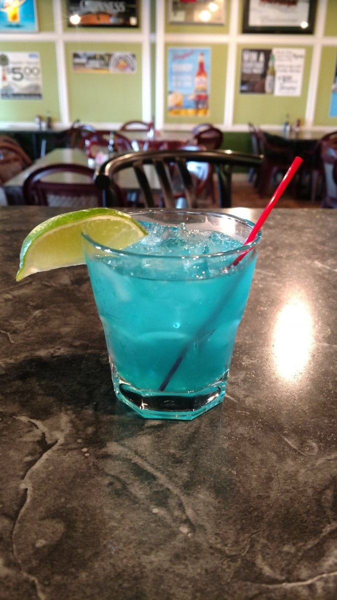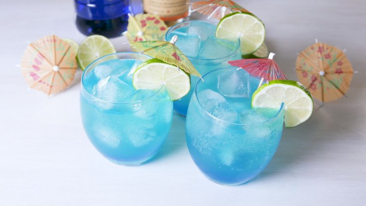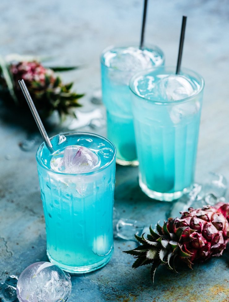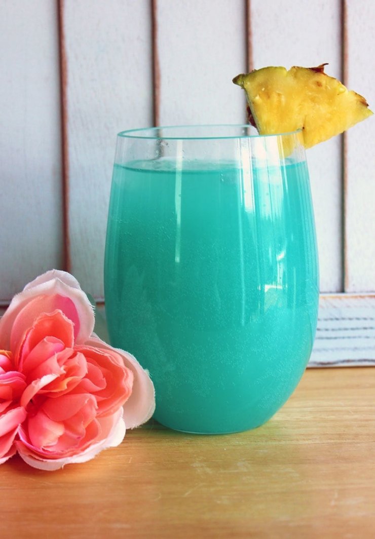 Ингредиенты: ликер Blue Кюрасао, сок лимона, водка, спрайт, лед, долька ананаса или лайма для украшения.
