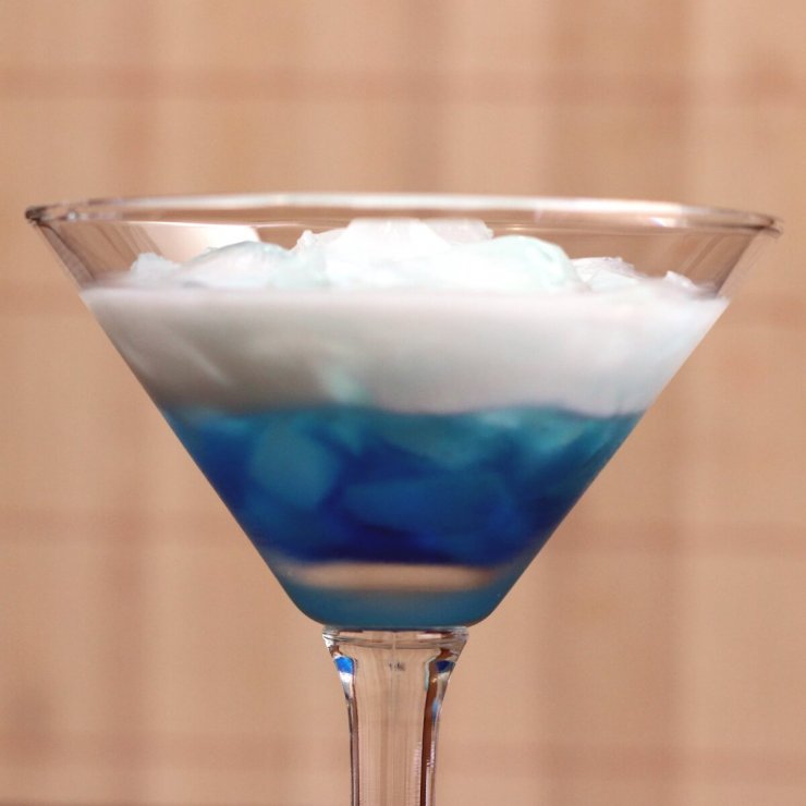 Ингредиенты: водка, сироп гренадин, Blue Кюрасао, сливки.