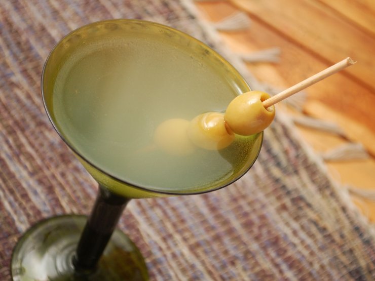 Готовить его следует таким образом: нужно взять сухой вермут (1 часть), водку (6 частей) и слить жидкость из консервированных оливок (1 часть).