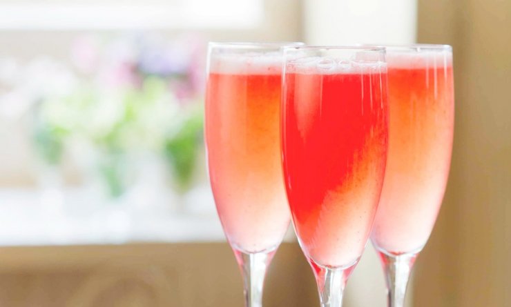 Интересное сочетание получается при смешивании игристого вина и сока. Этот коктейль не теряет опьяняющих свойств шампанского, но «бьет в голову» не так быстро. Это справедливо только для смесей из шампанского и сока!