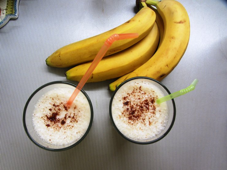 Еще один вариант этого десерта – это добавление к вышеуказанным ингредиентам банана. Получается совершенно иной напиток, банан в нем выступает на первые позиции.