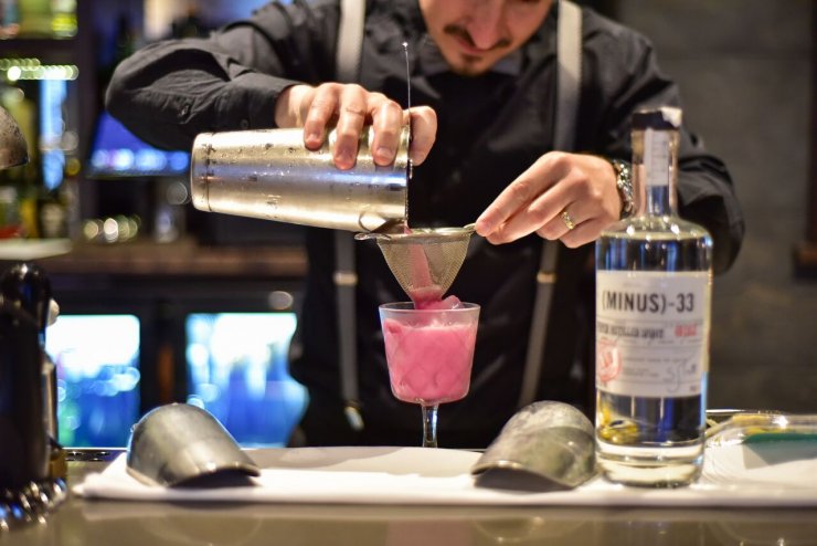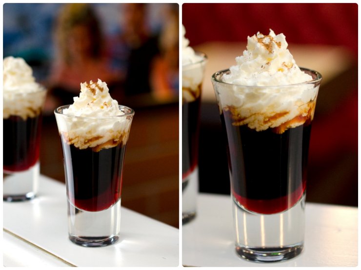 Все ингредиенты смешиваются в шейкере. Для подачи используются рюмки сауэр.