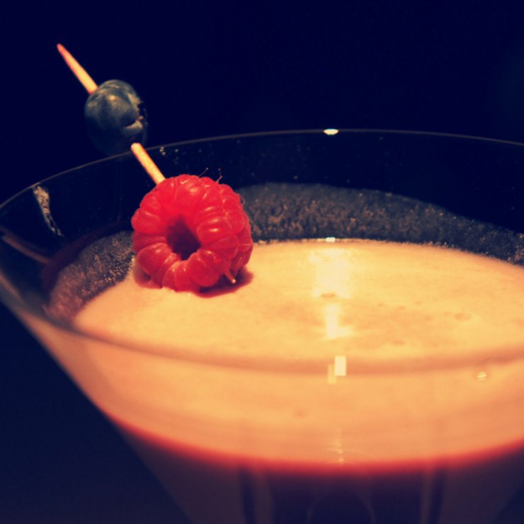 - небольшую часть ягод следует отложить для оформления коктейля. Остальные ягоды измельчаются блендером до получения пюре;
