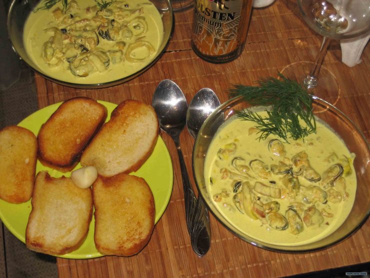 Чтобы приготовить морской коктейль со сливками понадобятся следующие ингредиенты: