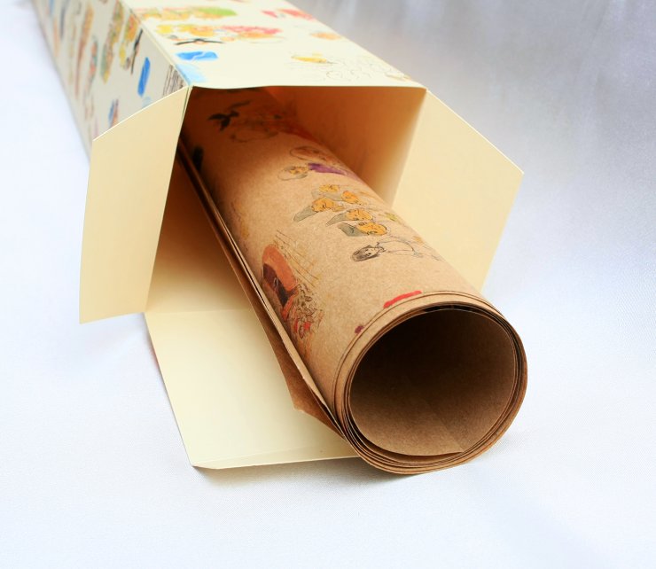 Из полученного материала можно изготовить красочную подарочную упаковку или использовать его в качестве какого-либо дизайнерского решения.