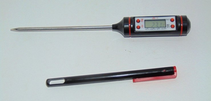 Электронный. Современный вариант механических моделей. Этот термометр используется для измерения температуры мяса и кондитерских изделий.