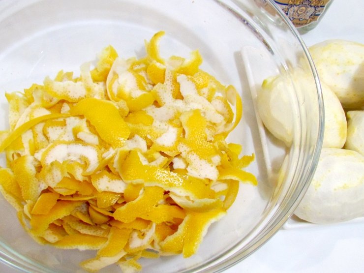 Снимаем кожуру, сами плоды же убираем, он понадобится после того, как настоится алкогольная основа. С кожурой мы смешиваем алкоголь и корицу. Далее эту смесь мы переливаем в бутылку, или любой другой герметичный контейнер, плотно закрываем крышкой и убираем в тёплую тёмную комнату на неделю.