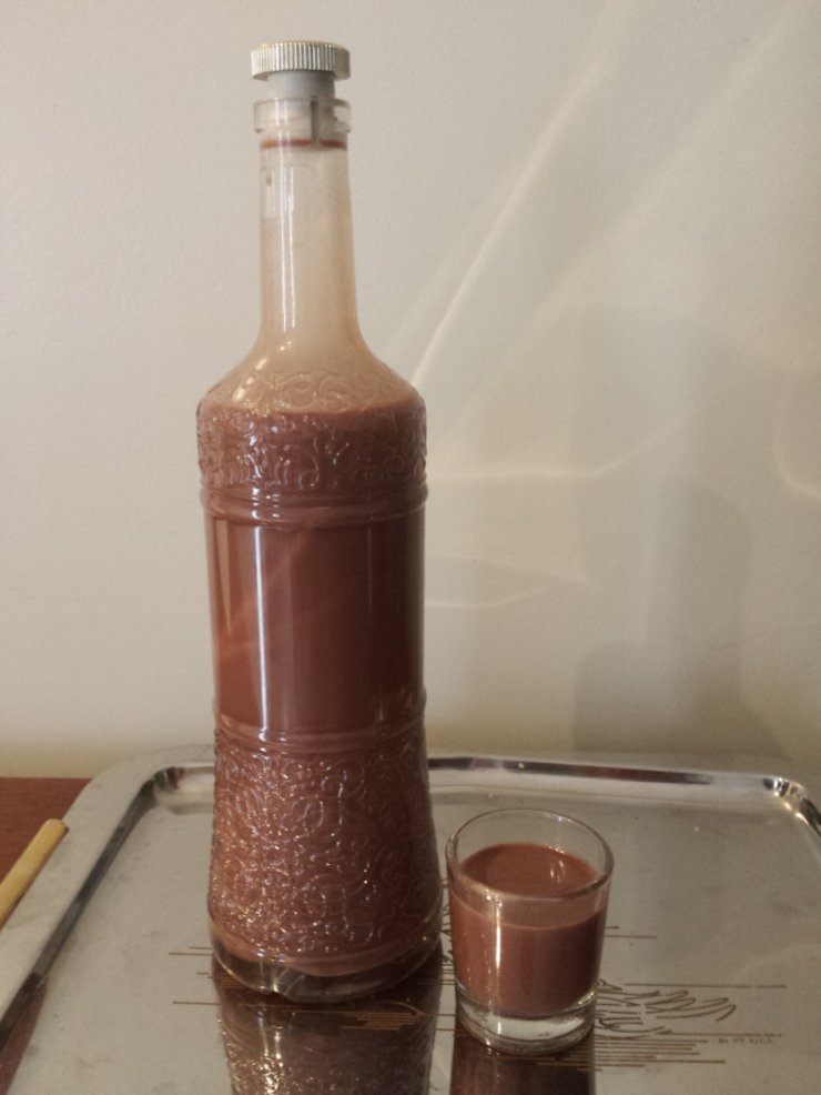 После этого вливаем в смесь, одновременно помешивая, сливки, после добавляем водку. Всю эту смесь хорошенько размешиваем ложкой. После этого нужно перелить полученную жидкость в бутылку для хранения. Хранить ликёр надо в прохладном месте.