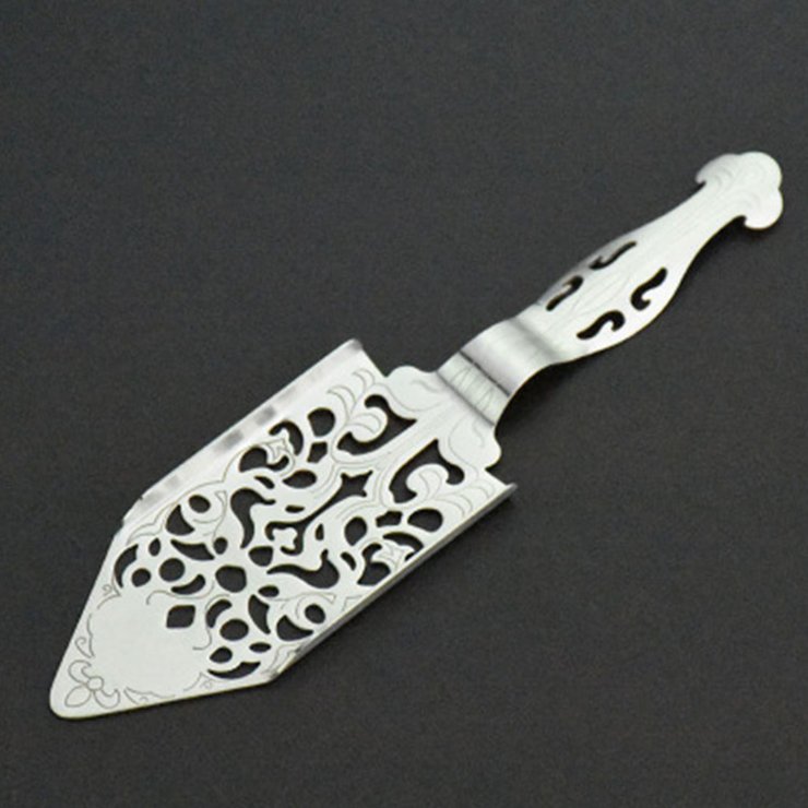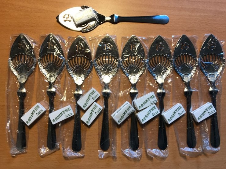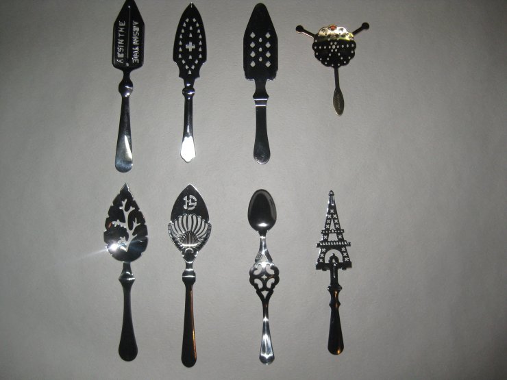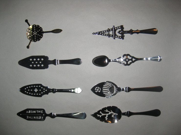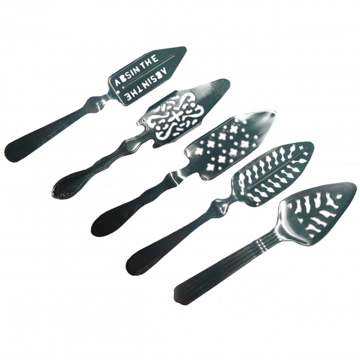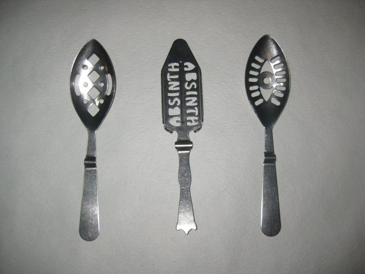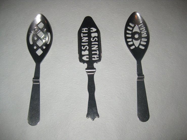 На фото ложки для абсента можно заметить специальные перфорированные отверстия, которые позволяют очистить абсент с помощью сахара для уменьшения количества ядов и их последствий.