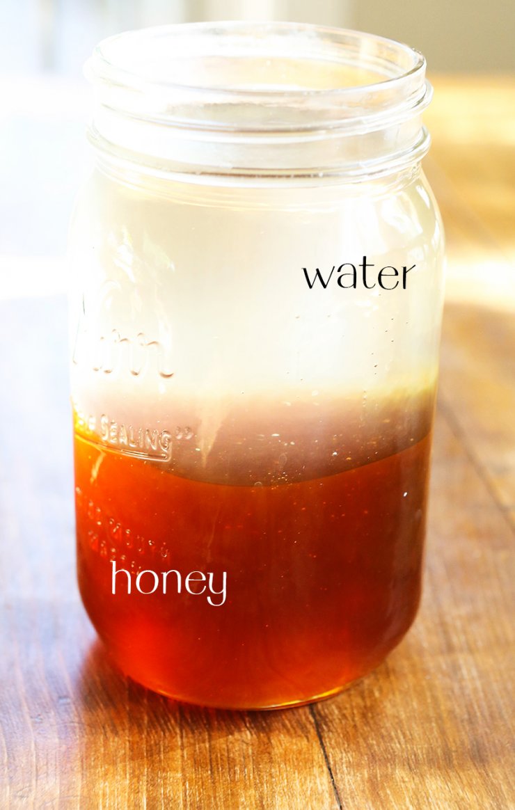 Для того, чтобы сделать сироп нужна очищенная вода и натуральный мед, в пропорциях один к одному. Ставим на небольшой огонь, постоянно помешивая и ждем, когда он растает.