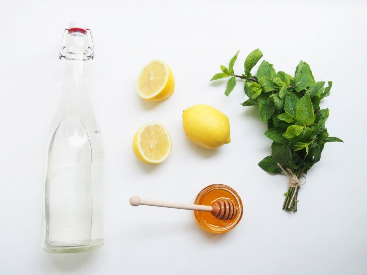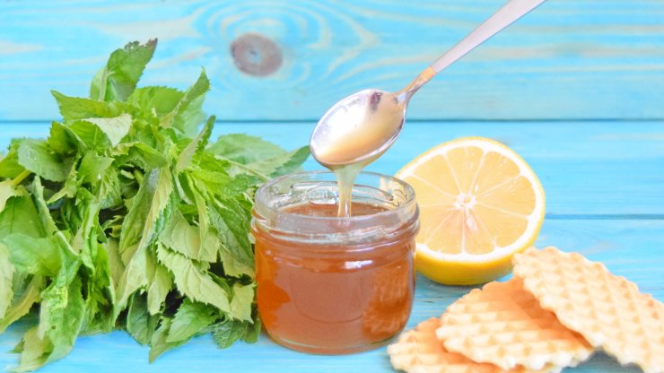 Сироп для выпечки делается следующим образом, нужно взять 126 грамм меда, 40 грамм сока лимона, а также небольшую веточку мяты. В емкость для приготовления сиропа нужно добавить сок лимона, смешать с медом и с листочками мяты.