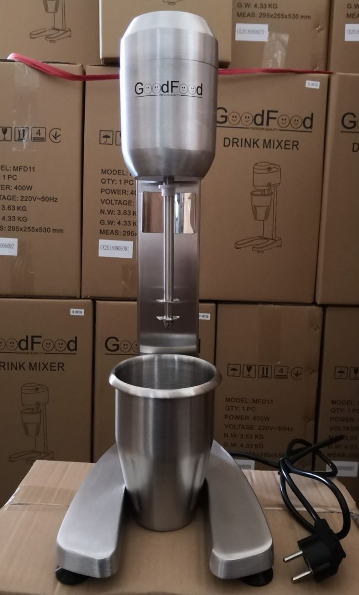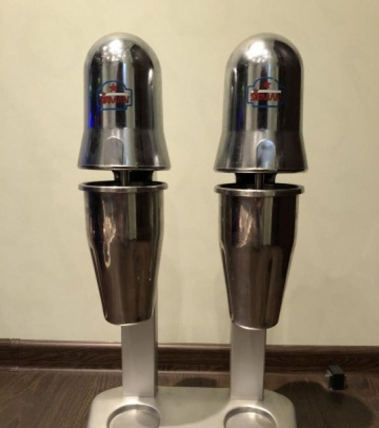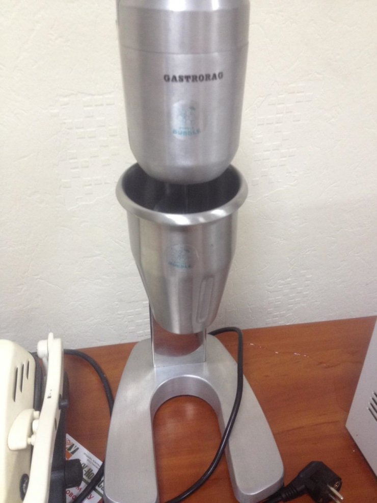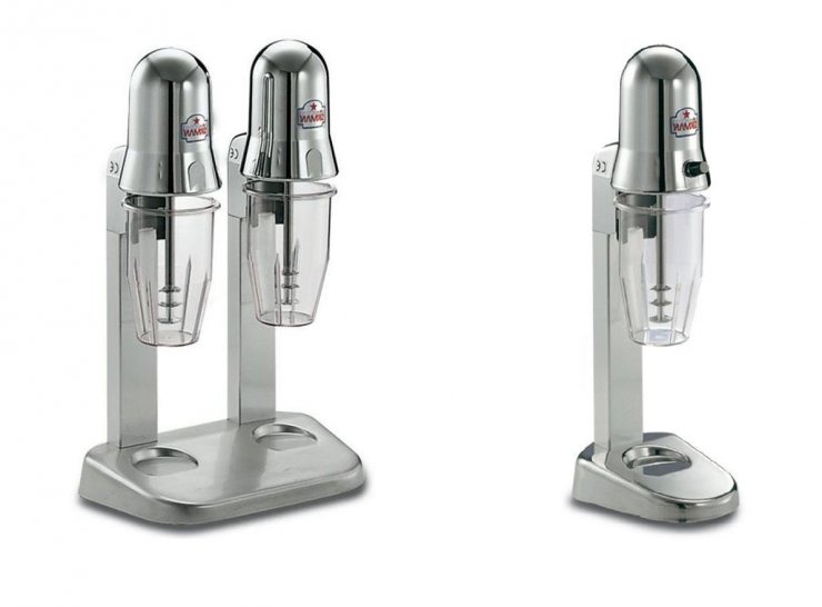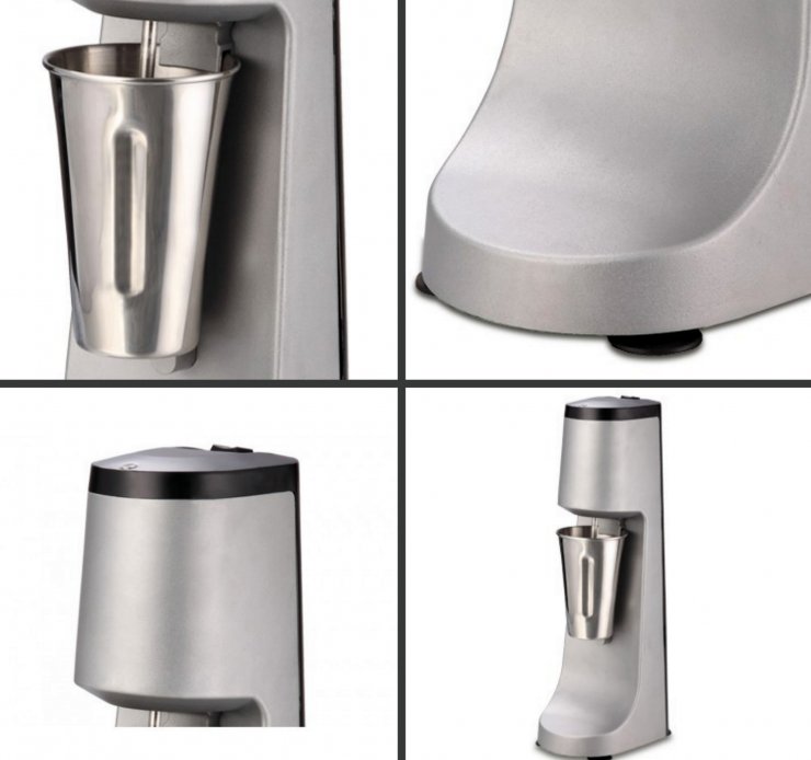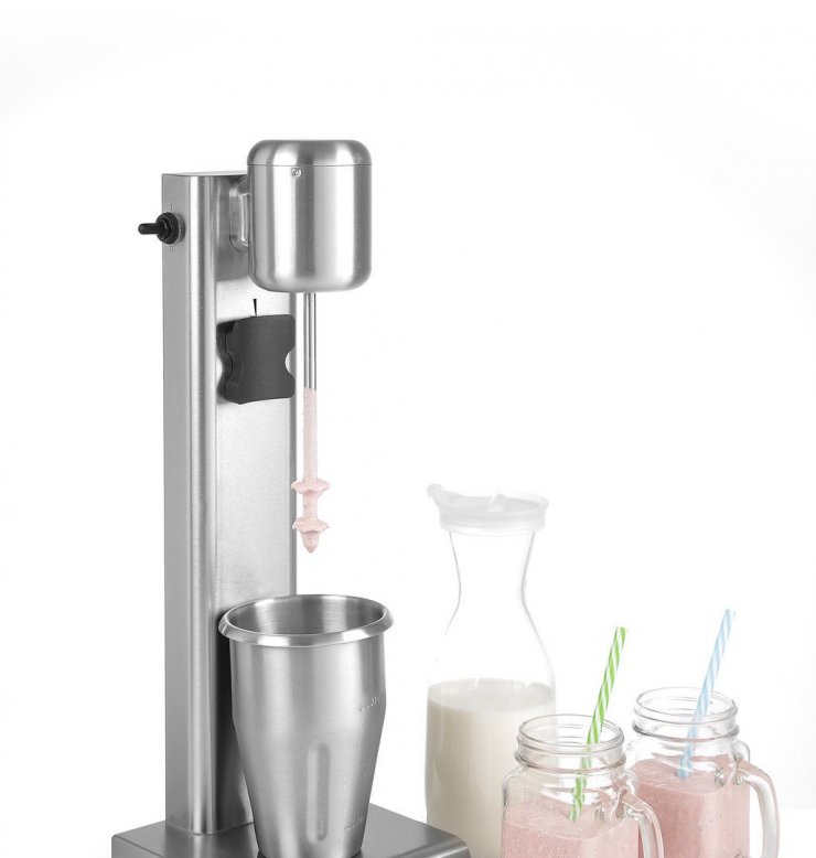 Молочный миксер — это аппарат с корпусом в виде цилиндра, с двигателем, смесительного стержня и стаканами для взбивания и обогащения воздухом различных смесей. Работает от электричества. По фото миксера для коктейлей можно сразу заметить специализацию этого агрегата.
