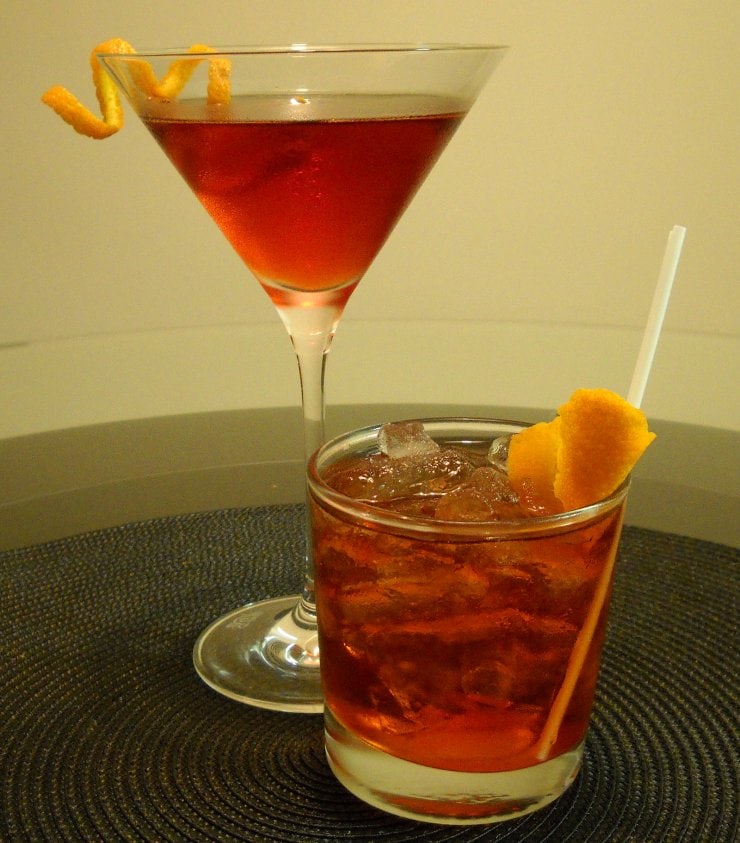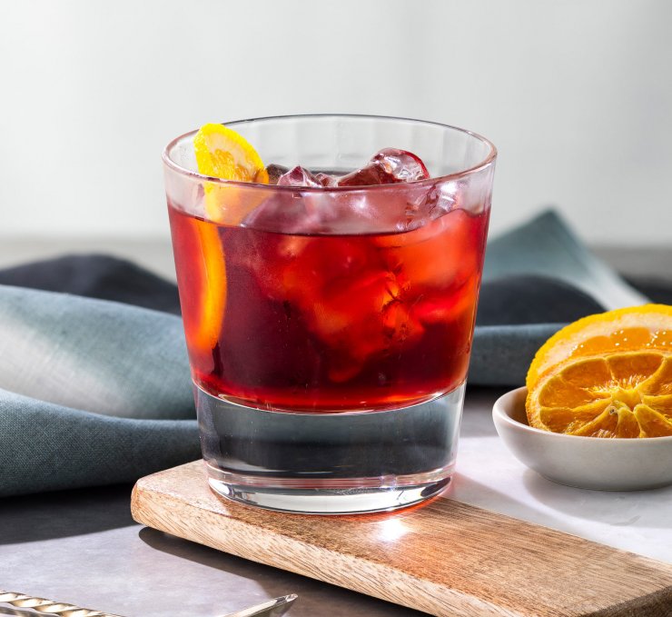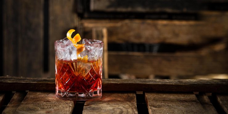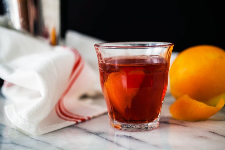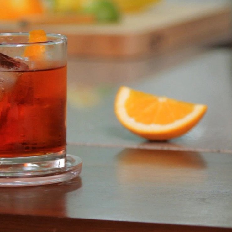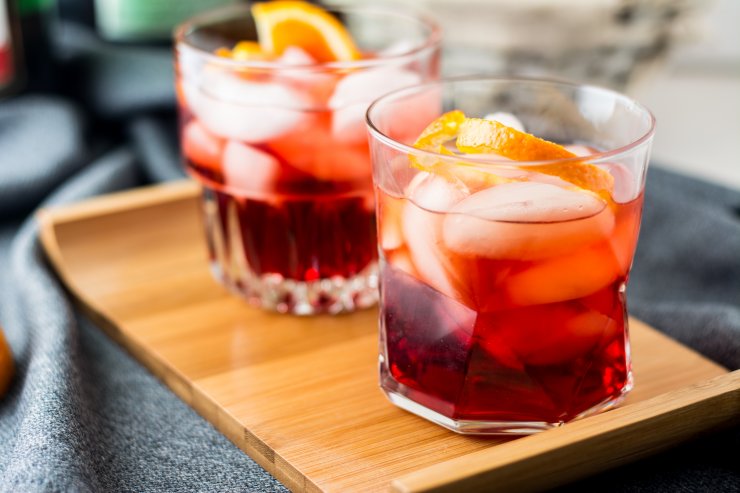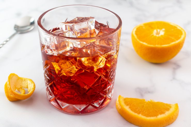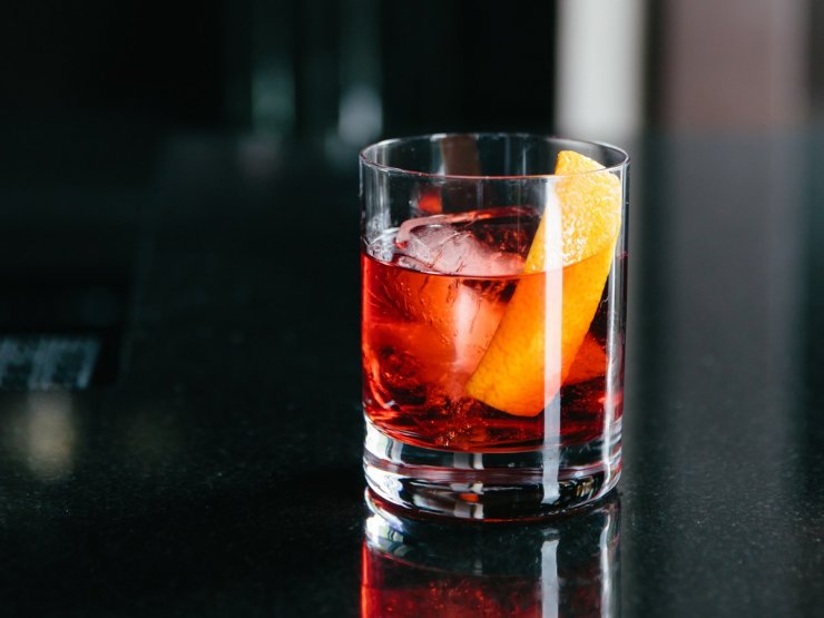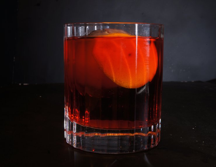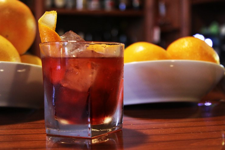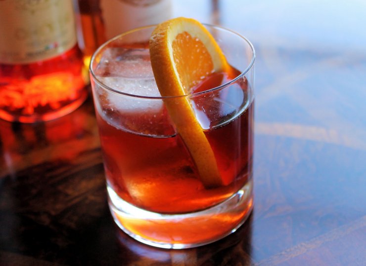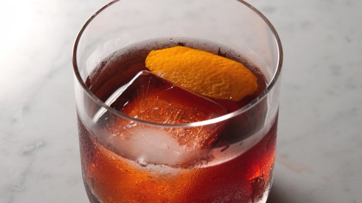 Сейчас достаточно взглянуть на фото коктейля Негрони, чтобы идентифицировать его по апельсиновой дольке на стакане рокс.