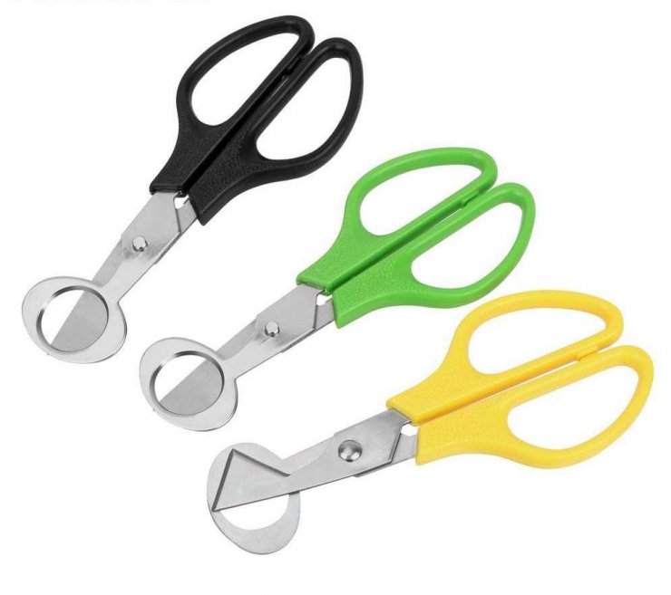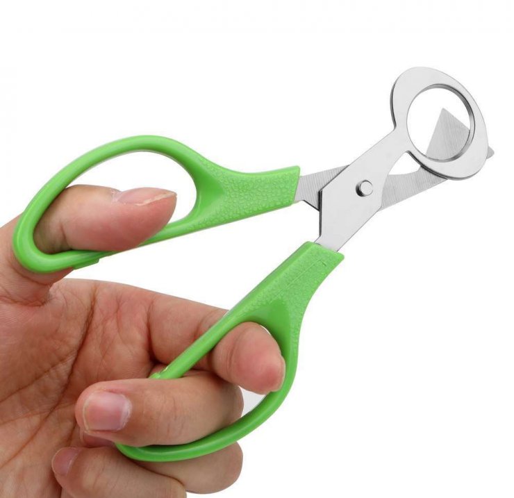 Эти ножницы могут быть открытыми и закрытыми. Чаще всего встречаются именно ножницы первого вида – они проще в конструкции, обычно меньше, да и дешевле тоже. Закрытая конструкция предусматривает спрятанным механизм срезания части яйца.
