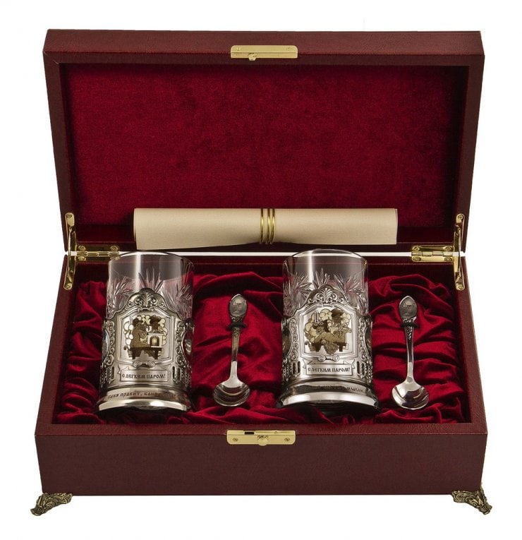 И как же не выпить горячего чайку в пути? И чтобы не пролить ничего, в обиход идет стакан в подстаканнике из серебра. И с тех самых пор Министерство железнодорожных путей стал самым большим заказчиком подстаканников.