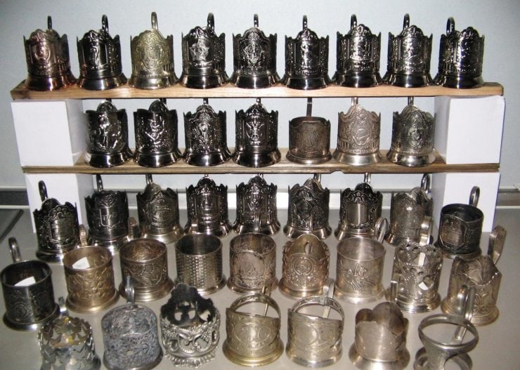 На тот момент подстаканники выполнялись только под заказ состоятельными любителями чая, так как они выполнялись в единичном экземпляре и украшались драгоценными камнями.