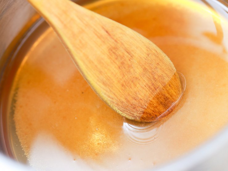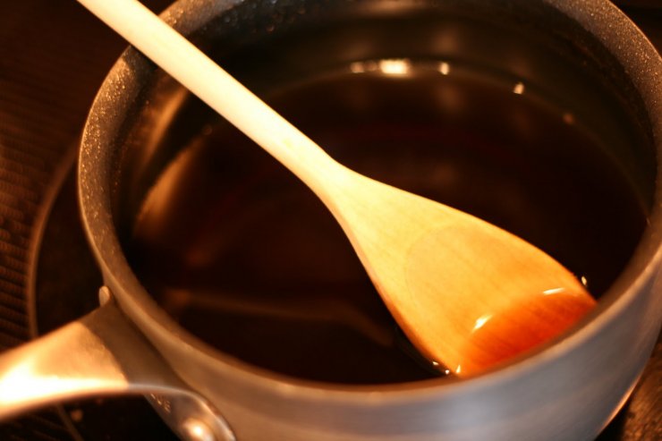 Для приготовления такого сиропа необходимо смешать 1 часть сахарного песка, 1 часть тростникового сахара и 2 части воды. Перемешиваем, кипятим, снимаем с огня и остужаем.