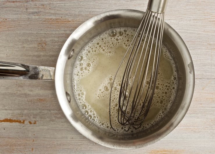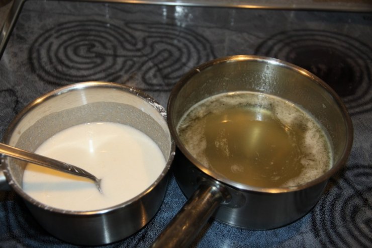 Рецепт: в емкости для приготовления сиропа нужно растопит масло и добавить к нему муку и соль. Полностью перемешав ингредиенты, добавляем сахар и ждем его полного растворения, постоянно помешивая.