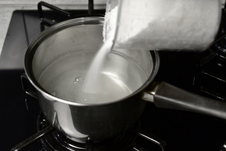 Вскипятите воду и залейте ей сахар. После интенсивного перемешивания добавьте кислоту и соль. Поставьте на огонь и доведите до кипения, непрерывно помешивая.