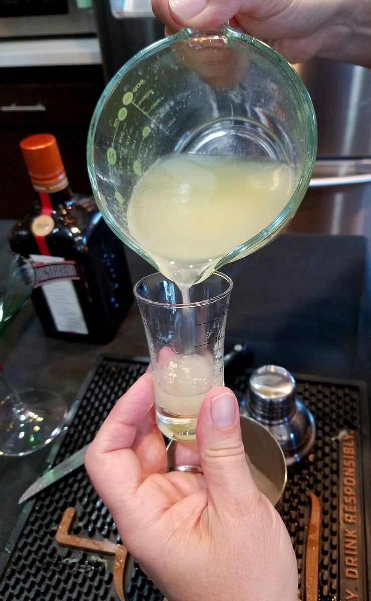 - Встряхнуть ингредиенты в шейкере либо другой закрытой посуде.