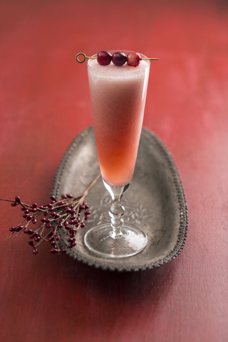 - Добавить клюквенный и апельсиновый соки в равных частях, перемешать напиток.