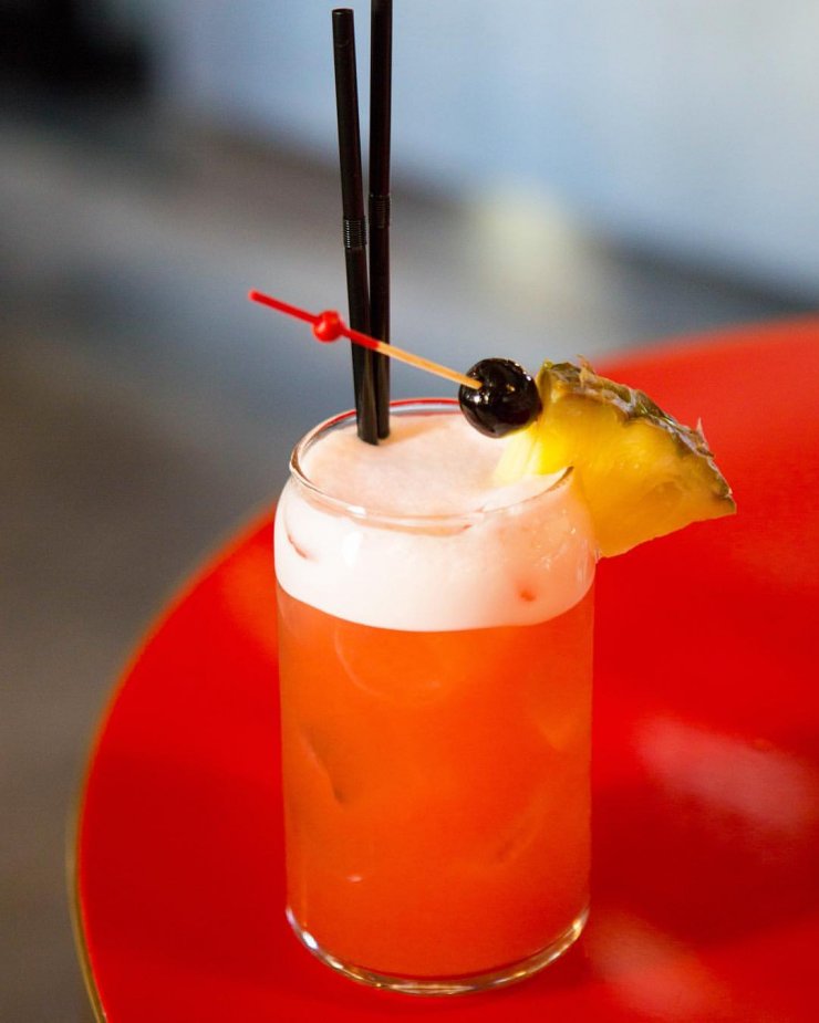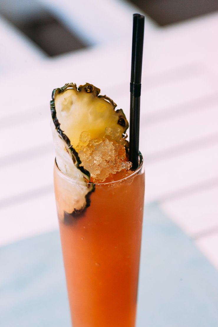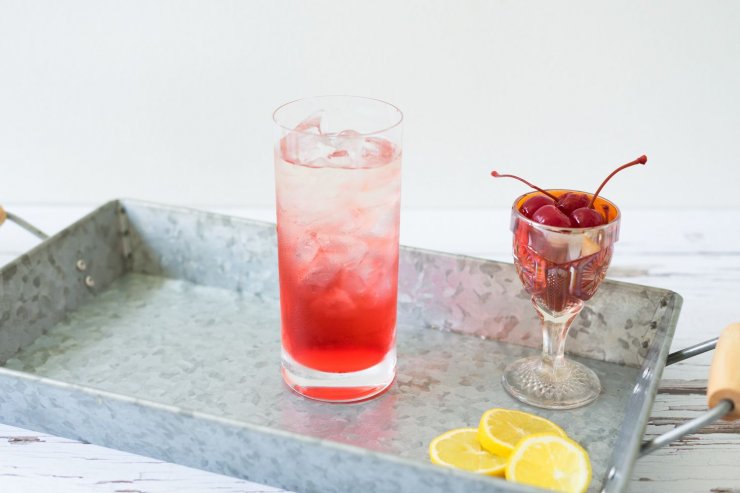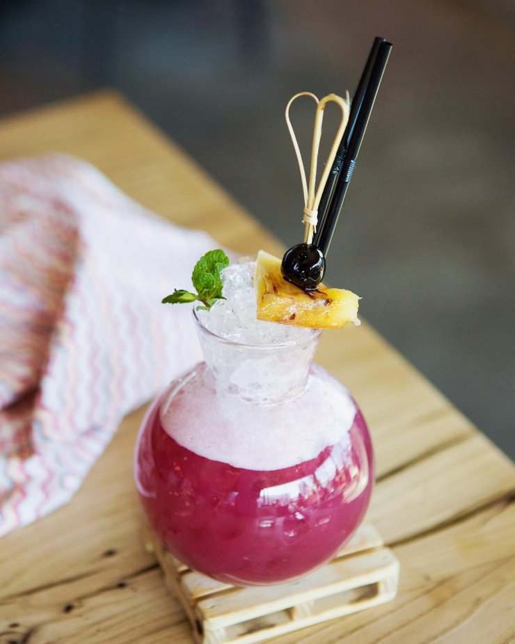 Подайте коктейль с трубочкой. Для украшения используйте мяту, вишню и ананас.