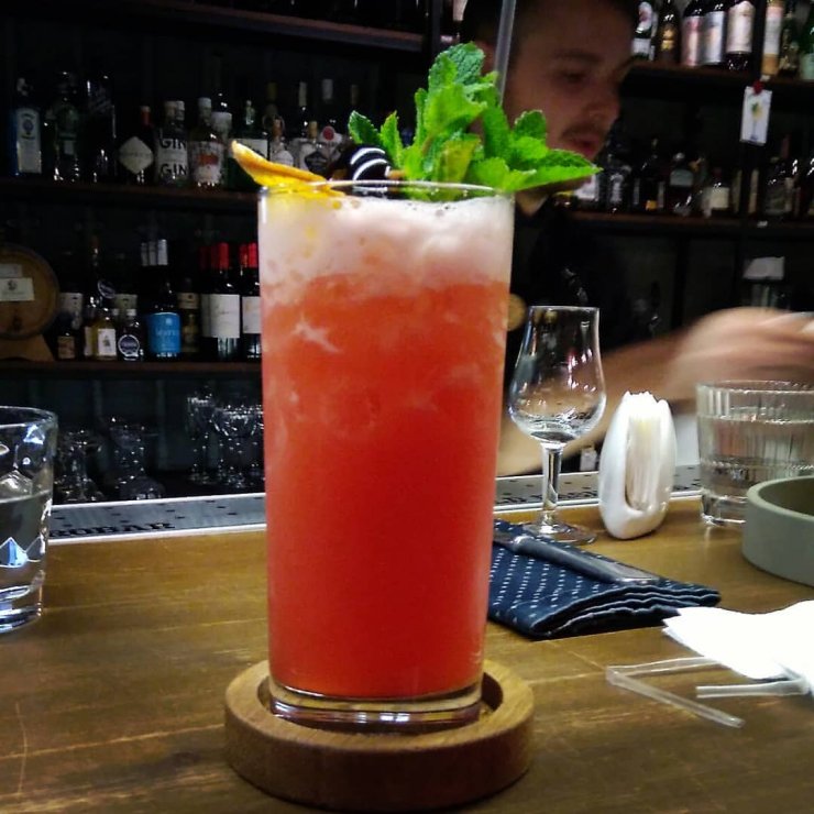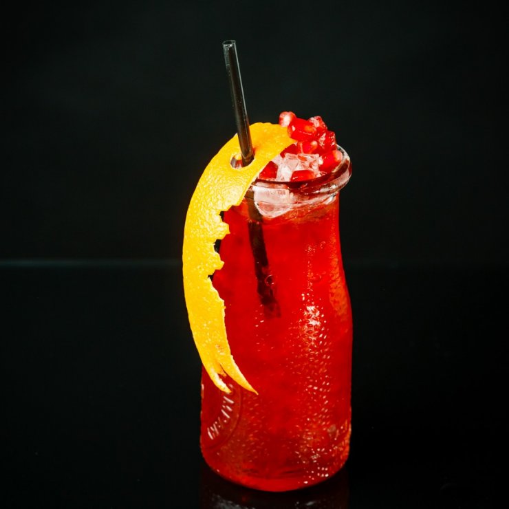 Особого вкуса придает слегка терпкая косточка вишни. За легкую горечь отвечает можжевельник. А свежести и ноток трав придают сок и ликер, использующийся в основе данного микса.