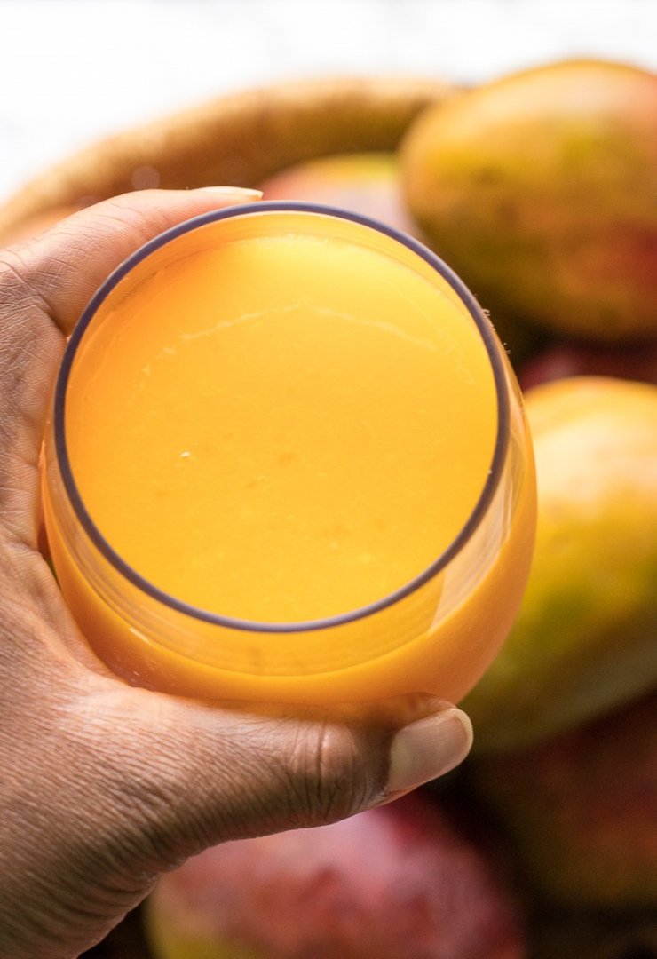 После переработки, если не хочется пить с мякотью, можно пропустить через сито. Приготовленный напиток может отличаться от сока манго на фото, но это зависит от сорта фрукта.
