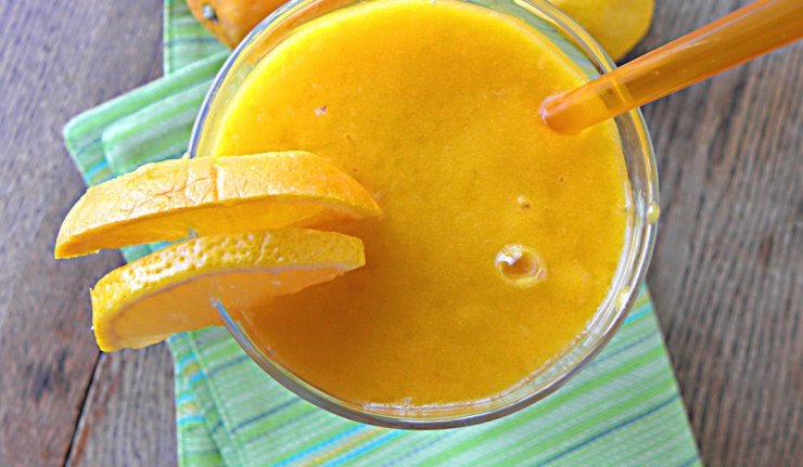 Если соковыжималки нет, то можно использовать блендер. Фрукт также нарезается кусочками, обязательно добавляется небольшое количество воды и по вкусу колотый лед.