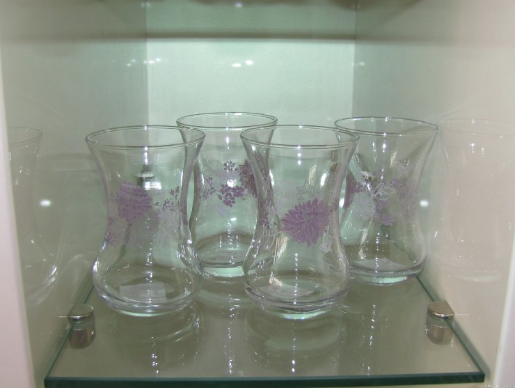 Стекло прозрачное, что дает вам возможность любоваться цветом чая, а хозяину знать, когда следует долить чаю.