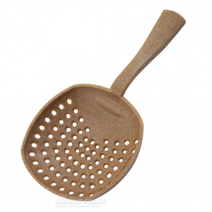 В его основу положена выгнутая пластинка с большим количеством отверстий, к которой прикреплена ручка. Отсутствие ушек для фиксации прибора в шейкере, делает процесс использования более сложным.