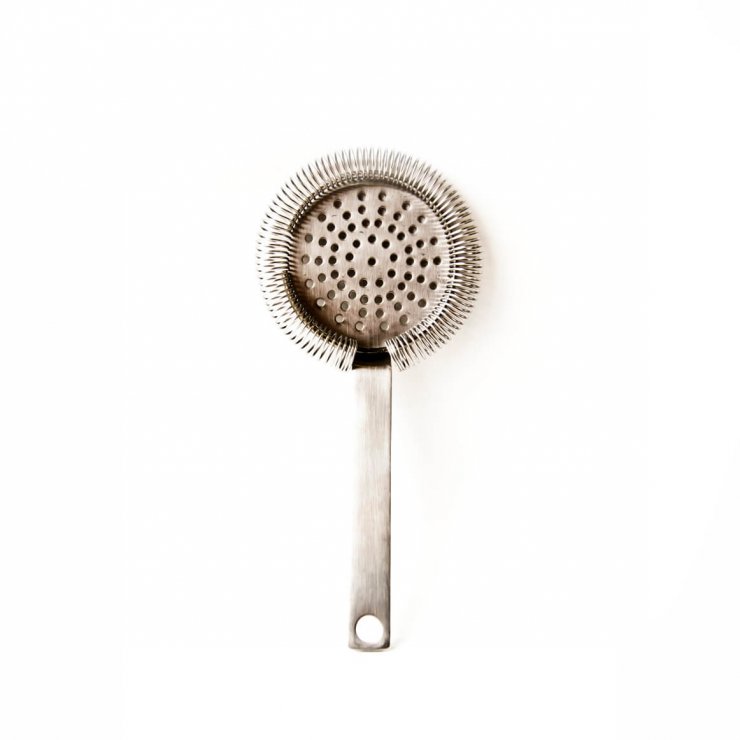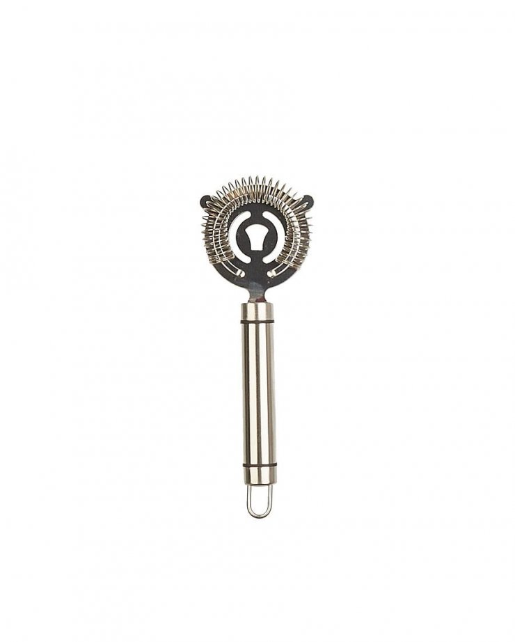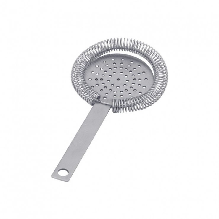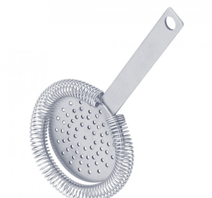 Файн или дабл стрейнер напоминает мелкое ситечко для чая, которое есть в каждом доме. Он более тщательно отделяет от напитка мелкие частицы (косточки, кожуру ягод). Чаще всего используется при изготовлении коктейлей, которые пьются без трубочки.