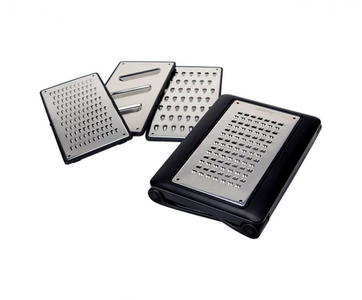 Терки с боксами и сменными полотнами являются самыми универсальными среди других. На такие терки можно докупать те полотна, которые вам необходимы.