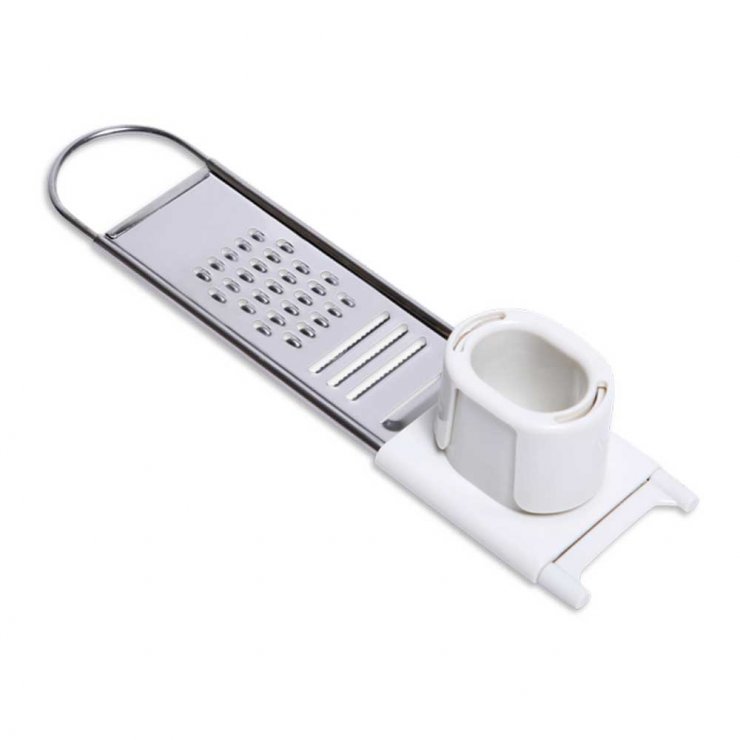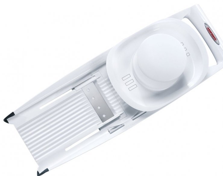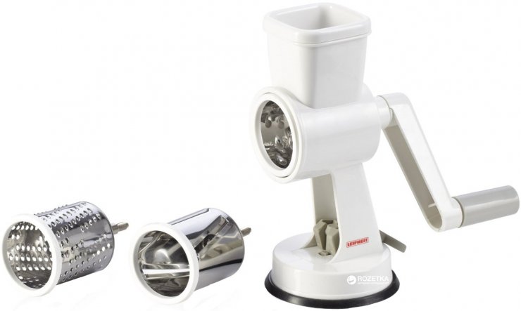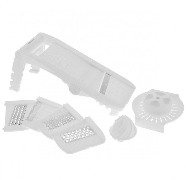 Такие терки экономят место на кухне, так как можно полотна хранить прямо в контейнере. И если, необходимо, натереть продукт уже прямо в блюдо, можно воспользоваться только насадкой.
