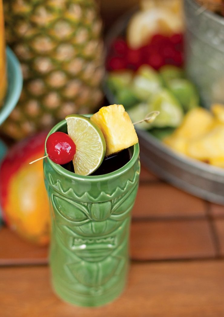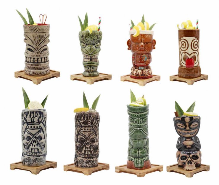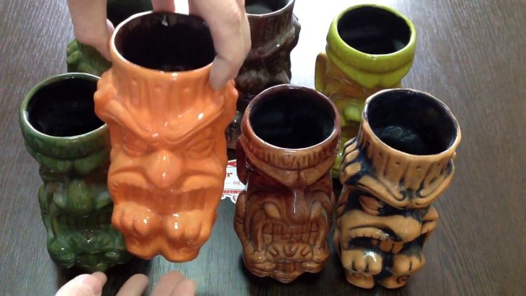 Оригинальная и необычная посуда, в которой подавали и подают эти напитки, до сих пор снискала славу и коллекционеров по всему миру. Незабываемый дизайн тики бокала в форме черепа не оставлял равнодушным никого из посетителей этих островов.