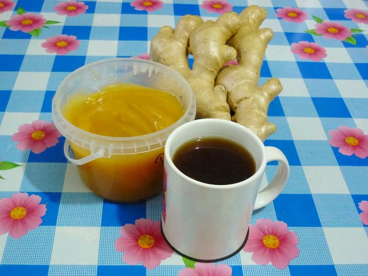 Для того чтобы приготовить эту мощнейший напиток от простуды необходимо нарезать корень имбиря на тонкие пластинки, а затем смешать его с двумя большими ложками меда и лимоном. Всю смесь залить кипятком.