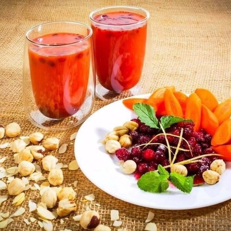 Смешайте сок капусты, груши, моркови и разбавьте водой до консистенции пригодной для комфортного питья.