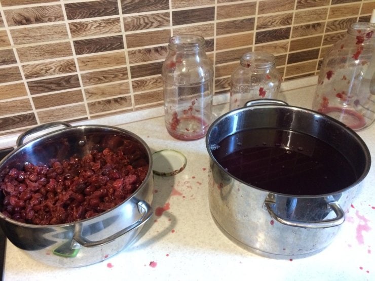 Для начала нужно помыть спелые ягоды и удалить косточки с черенками.