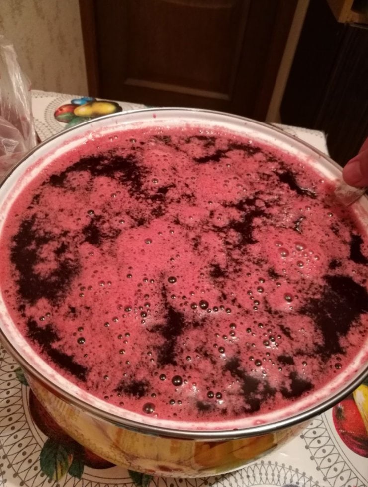 На умеренном огне проварить в течение 5 минут, и отжать приготовленную массу. Полученный сок разлить по стеклянным банкам. Готовый продукт поместить в темное и прохладное место.