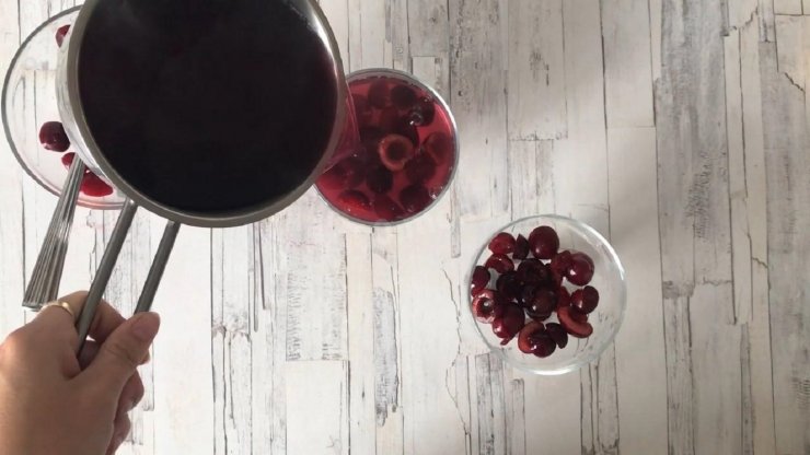 На полтора килограмма вишен потребуется один килограмм сахара. Полученную массу следует поместить в темное и прохладное место на 5-6 часов.